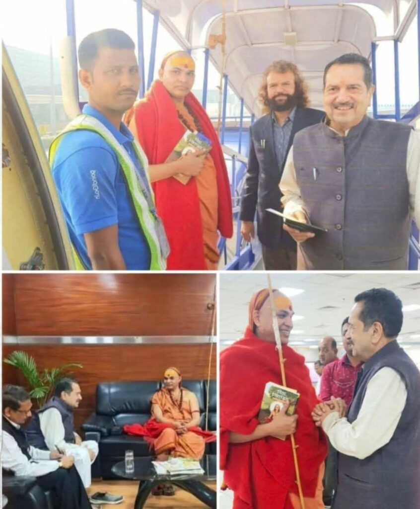 चित्र में अविमुक्तेश्वरानंद सरस्वती के साथ इंद्रेश कुमार और सूफ़ी गायक आरक्षित हंस राज़ हंस, जो अंध भक्त होकर महा वज्र पार्टी में शामिल हो गया था.