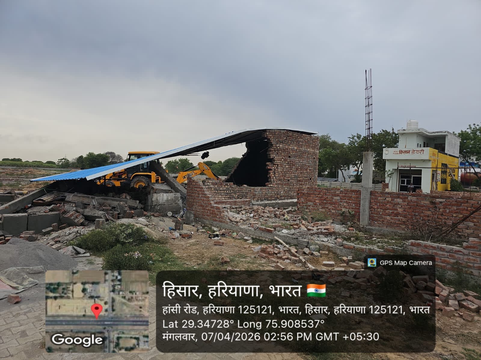 यह कार्रवाई जिला नगर योजनाकार हिसार दिनेश कुमार के नेतृत्व में की गई। मौके पर ड्यूटी मजिस्ट्रेट के रूप में दक्षिण हरियाणा बिजली विभाग के उपमंडल अभियंता दिनेश कुमार मौजूद रहे। इसके अलावा कनिष्ठ अभियंता अमन और पटवारी शमशेर सहित विभाग की टीम ने पूरे अभियान को अंजाम दिया।