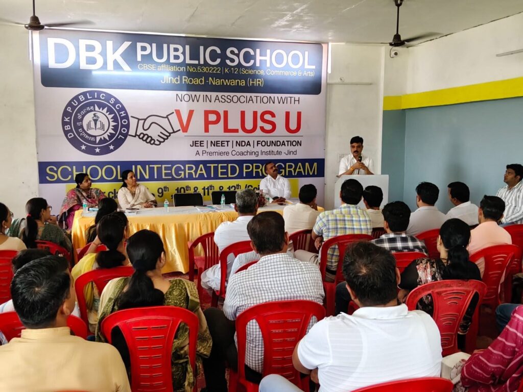 डीबीके पब्लिक स्कूल ने विद्यार्थियों के उज्ज्वल भविष्य की दिशा में एक और महत्वपूर्ण कदम बढ़ाते हुए वी प्लस यू के साथ शैक्षणिक सहयोग स्थापित किया है। इस अवसर पर कक्षा 8वीं से 12वीं तक के विद्यार्थियों के अभिभावकों के लिए एक विशेष ओरिएंटेशन कार्यक्रम आयोजित किया गया। जिसमें प्रतियोगी परीक्षाओं की तैयारी हेतु स्कूल में शुरू किए जा रहे इंटीग्रेटेड कम्पटीटिव एग्जाम प्रिपरेशन विंग की जानकारी दी । अब उन्हें इंजीनियरिंग , मेडिकल /आयुष एवं जल थल वायु सेवा जैसी प्रतिष्ठित प्रतियोगी परीक्षाओं की तैयारी के लिए बड़े शहरों का रुख नहीं करना पड़ेगा। अब यह उत्कृष्ट सुविधा स्कूल परिसर में ही उपलब्ध होगी। रमेश चाहल ने कहा कि स्कूल में वही उच्च स्तरीय प्रणाली लागू की जाएगी।जिसके माध्यम से विद्यार्थियों को प्रारंभिक स्तर से ही प्रतियोगी परीक्षाओं के लिए तैयार किया जाएगा। उन्होंने बताया कि सही मार्गदर्शन और समय पर तैयारी ही सफलता की कुंजी है। विद्यालय के निदेशक राजेश शर्मा ने अपने संबोधन में कहा कि यह एंट्रेंस एग्जाम प्रिपरेशन विंग नरवाना को प्रतियोगी परीक्षाओं की तैयारी का एक प्रमुख केंद्र बनाने की दिशा में मील का पत्थर साबित होगा। साथ ही उन्होंने अभिभावकों को आश्वस्त किया कि अब बच्चों को ऐसी तैयारी के लिए अपने परिवार से दूर जाने की आवश्यकता नहीं होगी?। क्योंकि यह सुविधा स्कूल परिसर में ही उपलब्ध करवाई जाएगी।