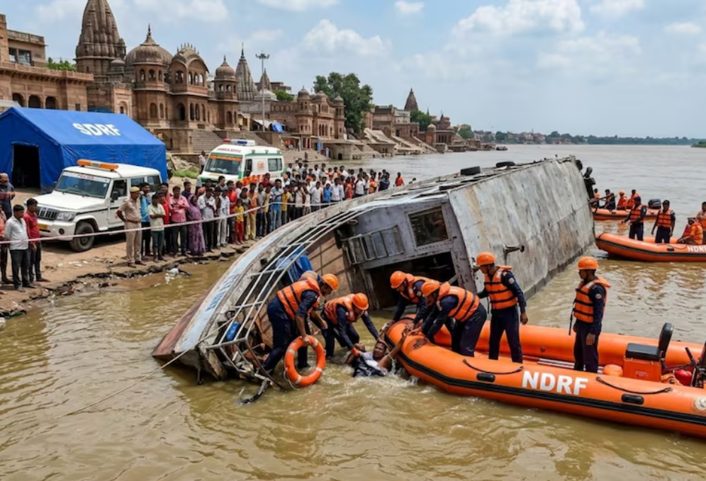 शुक्रवार दोपहर करीब 3:00 बजे, पंजाब से आए श्रद्धालुओं का एक समूह श्रृंगार घाट से नाव में सवार होकर देवरहा बाबा आश्रम के लिए निकला था. नाव में कुल 37 लोग सवार थे. चश्मदीदों के मुताबिक, नाव की रफ्तार तेज थी और लोग भजन-कीर्तन कर रहे थे. जैसे ही नाव वंशीवट और केसी घाट के बीच पहुंची, वहां यमुना में लगे पांटून (पीपा) पुल की मरम्मत का काम चल रहा था. एक जेसीबी मशीन रस्से के सहारे पुल के एक हिस्से को खींच रही थी.